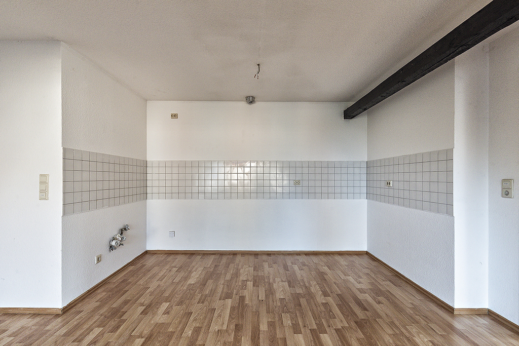 Ausstattung: Wohn-/Schlafraum mit Bereich für Küchenzeile, Bad mit Wanne und Fenster