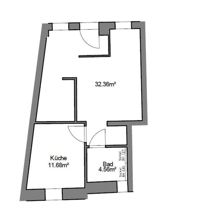 Ausstattung: Wohn- und Schlafzimmer, halboffene Küche, Bad mit ebenerdiger Dusche